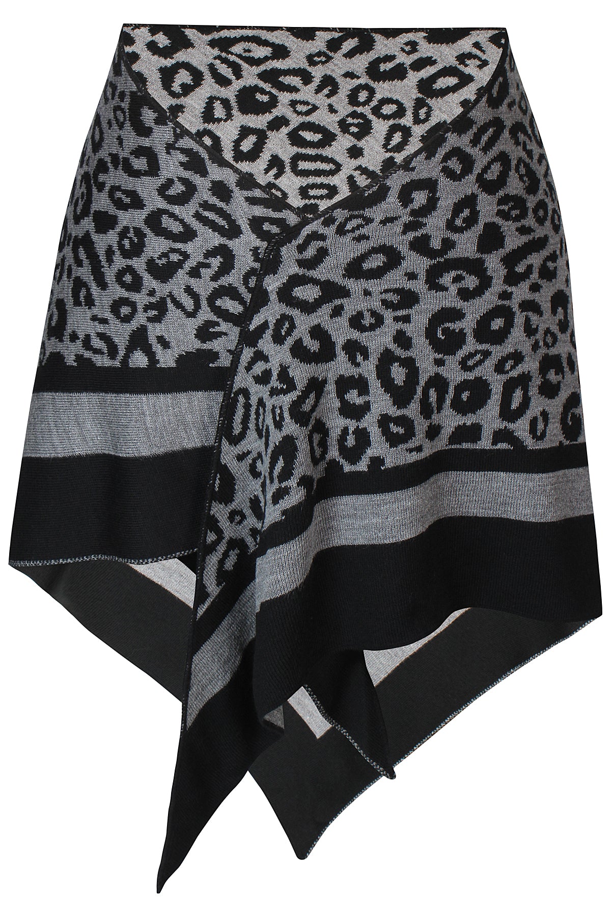 Stort strikket tørklæde med dyreprint og striber
