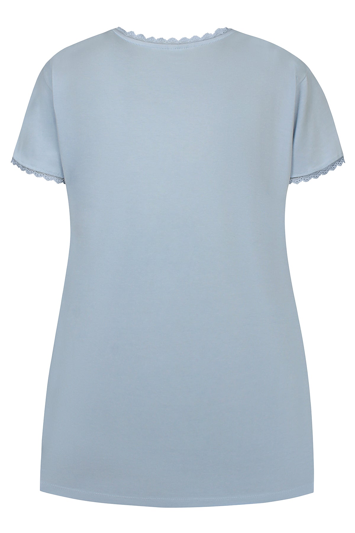 Denne T-shirt er designet med fokus på enkelhed og et strejf af femininitet. Det klassiske snit kombineret med en V-udskæring gør den til en oplagt hverdagsfavorit. Fine blondekanter ved hals og ærmer tilfører et elegant finish, som løfter selv de mest afslappede outfits.