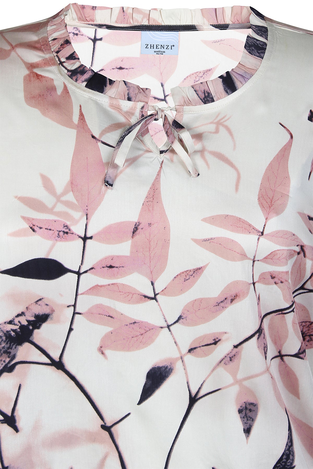 ZHENZI | ANGEL 1331 | Viskosebluse med flæser og bindebånd