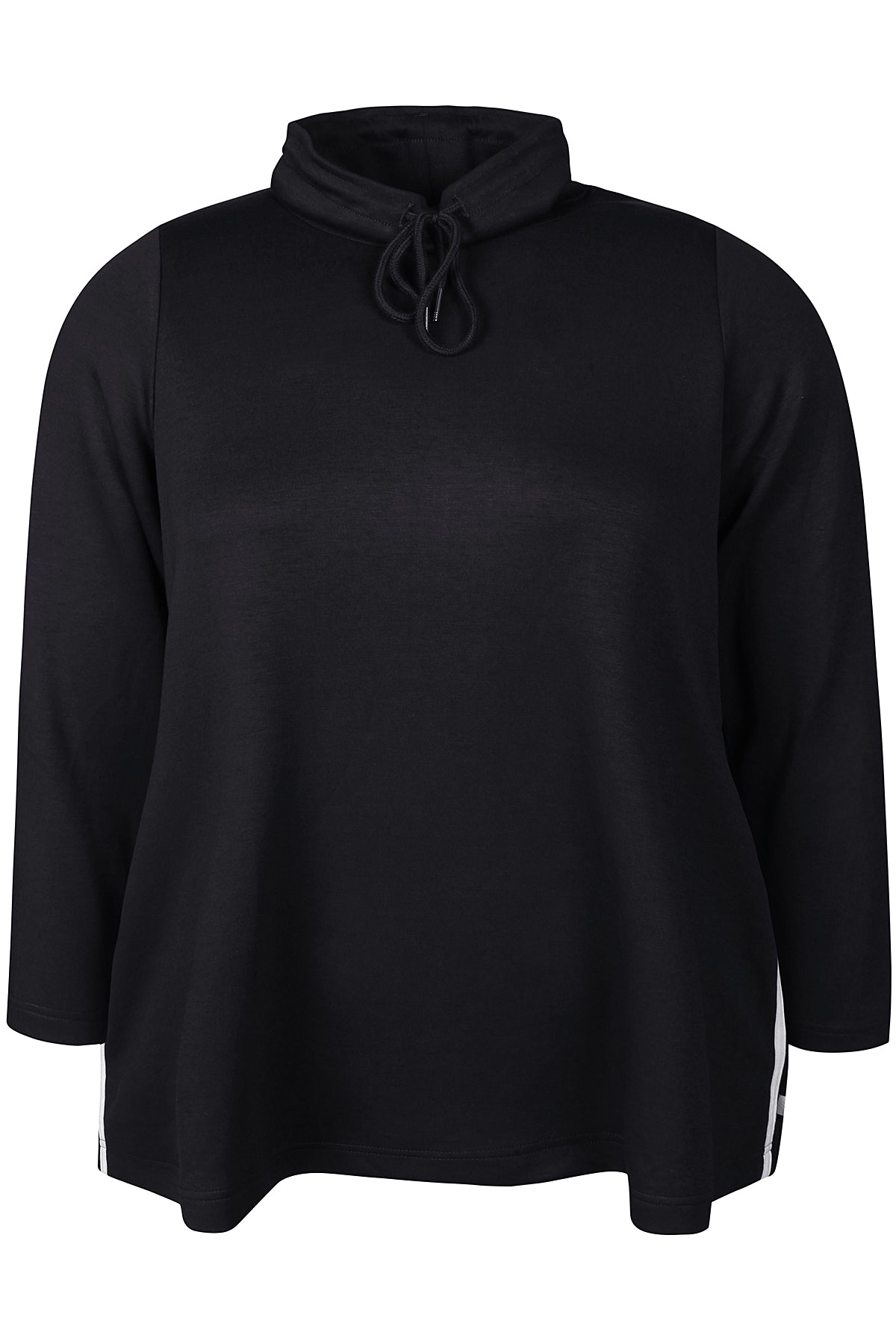 MYA 1182 er en moderne og komfortabel trøje i blød scuba-kvalitet, der kombinerer et sporty udtryk med casual komfort. Den har en høj hals med snøre og karakteristiske dobbelte striber langs siderne, som giver et aktivt og dynamisk look.